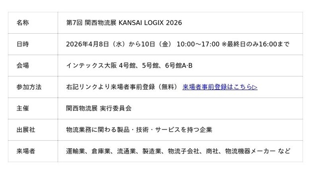 『第7回 関西物流展 KANSAI LOGIX 2026』webサイトはこちらから▷