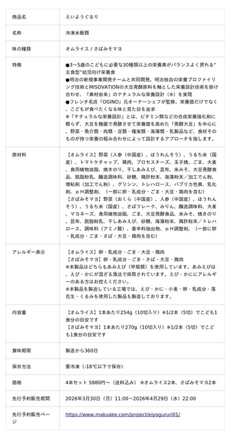 【先行予約販売ページ】https://www.makuake.com/project/eiyogururi01/
