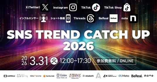 株式会社ラバブルマーケティンググループ(本社:東京都港区、代表取締役社長:林雅之、証券コード:9254)の子会社で、企業のSNSマーケティングを支援する株式会社コムニコ(本社:東京都港区、代表取締役:長谷川 直紀、以下 コムニコ)は、2026年3月31日(火)12時から、コムニコ主催のSNSマーケティングに特化したオンラインカンファレンス「SNS TREND CATCH UP 2026」を再配信いたします。当カンファレンスは今年1月28日(水)に開催したもので、申込み者数は1,400名以上という、大変盛況かつ好評をいただくイベントとなったため、このたび再配信することにいたしました。