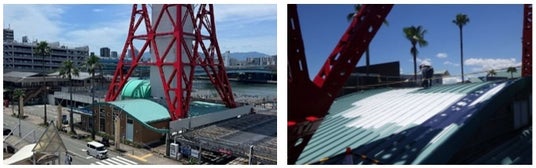 ▲博多港ベイサイドミュージアム屋根への塗装前後の様子