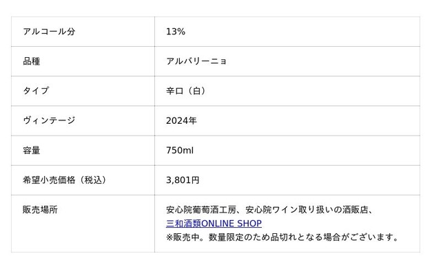 『安心院ワイン アルバリーニョ 矢津』(vin.2024)