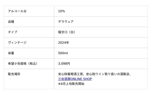 『安心院ワイン フランシスコ デラウェア』(vin.2024)