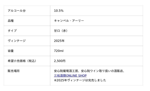 また、『安心院ワイン 小公子』(vin.2023)と『安心院ワイン 奏果 キャンベル・アーリー』(vin.2025)が「ゴールド」を受賞したことをお知らせいたします。