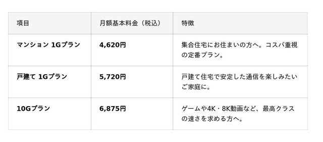 多様なライフスタイルに合わせ、手頃な1Gプランから超高速10Gプランまでラインナップしました。
