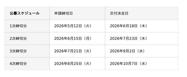 ※公募スケジュールは随時追加・更新されます。