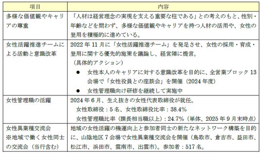 認定されています。「プラチナえるぼし」の認定は中四国地方の金融業では初となります。
