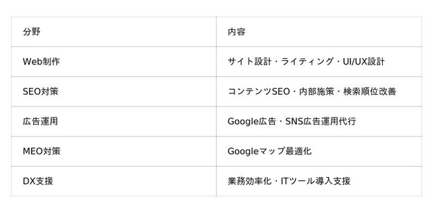 事業内容:戦略策定/マーケティング/SEO対策/ホームページ制作/広告運用/DX支援
