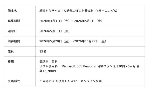 【カリキュラム詳細】http://job-training.jp/wp-content/uploads/2026/03/IT_05_ooita.pdf