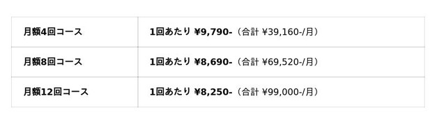 WAPLEは2021年の1号店開業以降、完全個室×初心者特化という独自ポジションで関東エリアに展開を続けています。現在、東京都内7店舗・埼玉県9店舗・神奈川県5店舗・大阪府に1店舗の計22店舗を運営。月額制モデルにより継続的な成長を実現しています。引き続き駅近立地への出店を進め、女性・ファミリー層・カップル層がさらに通いやすいブランドへの進化を目指します。■ 料金表