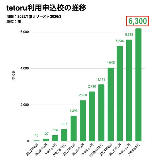 SchoolTech事業を展開するClassi株式会社(本社:東京都新宿区、代表取締役社長:竹岡章、以下Classi)は、小中学校向け保護者連絡サービス「tetoru(テトル)」の導入校数が6,300校に至ったことをお知らせいたします。