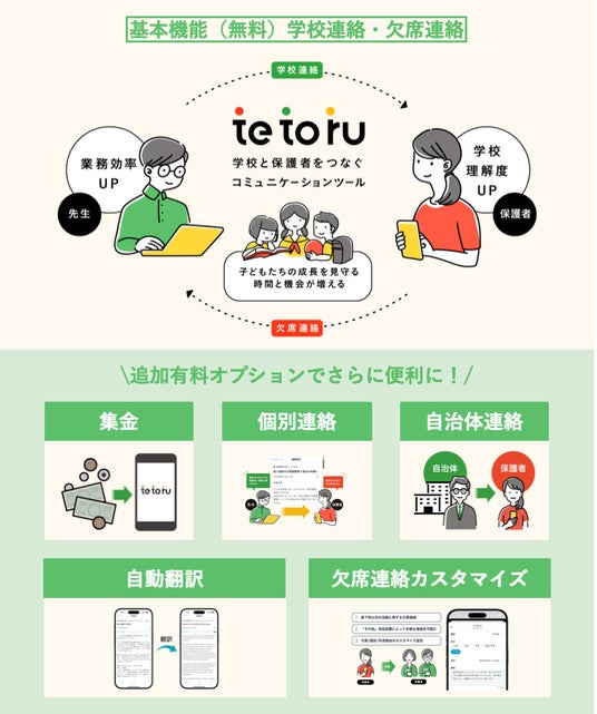 今後も、tetoruは自治体・学校と保護者をつなぐ連絡サービスとして、保護者連絡に関する業務負担の軽減と、確実な情報伝達を実現してまいります。