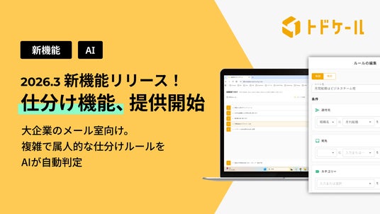 株式会社トドケール(本社:東京都千代田区、代表取締役:野島 剛、以下「トドケール」)は、2026年3月16日、クラウド型郵便・荷物管理サービス「トドケール」において、新機能「仕分け機能」の提供を開始しました。本機能は、大企業のメール室(受付・仕分け部門)が日常的に直面する複雑な仕分けルールへの対応を、AIが99%の精度で自動化するものです。郵便物・配達物の写真から宛先情報を読み取り、事前に設定されたルールに基づいて瞬時に仕分け先を特定します。人的判断に依存してきたメール室業務のガバナンスを強化し、情報漏洩リスクや誤配による業務ロスを大幅に低減します。