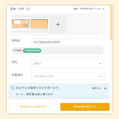 仕分けルールは、管理者が管理画面から直感的に登録・編集できます。ルールは単一条件だけでなく、複合条件(例:「A社からの荷物」かつ「請求書」の場合は経理へ)にも対応しており、現場の複雑な運用実態に即した設定が可能です。