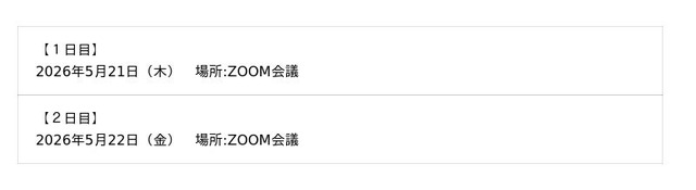 ■開催日程 (御受講の方は1日目と2日目両方をご予約下さい。)