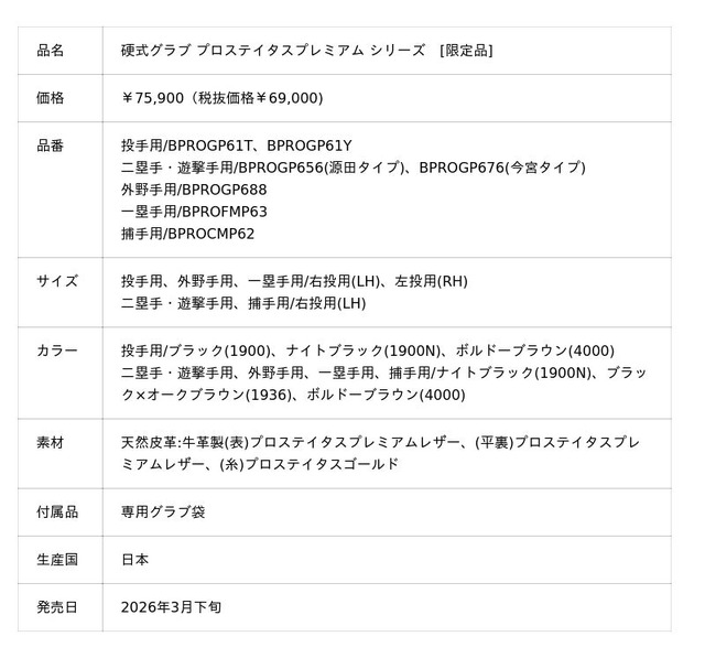 「ベースボールを科学する。」ゼット株式会社(本社/大阪市天王寺区、代表取締役社長/渡辺裕之)は、ゼットクラフトマンが技術力を結集し作り上げた硬式グラブ【プロステイタス プレミアムシリーズ 限定モデル】を発売しました。
