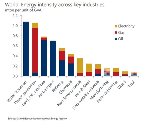 【図2】主要産業別のエネルギー集約度(GVA単位あたり)と燃料構成