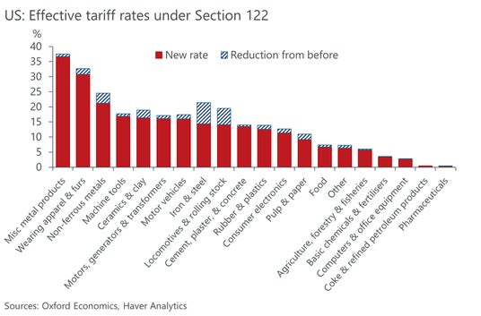 【図1】15%一律関税の導入に伴う米国の実効関税率の変化(セクター別予測)