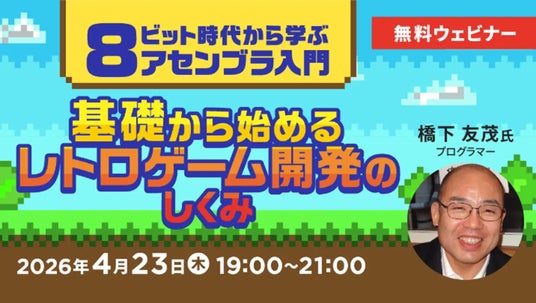 株式会社クリーク・アンド・リバー社(C&R社)は4月23日(木)、レトロゲーム開発に興味がある方を対象とした無料のオンラインセミナー「8ビット時代から学ぶアセンブラ入門 基礎から始めるレトロゲーム開発のしくみ」を開催します。