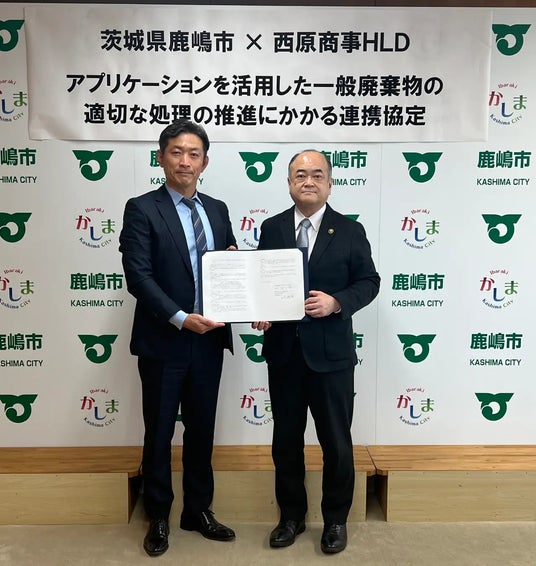 2025年3月26日、茨城県鹿嶋市と株式会社西原商事ホールディングスによる連携協定締結式の様子。