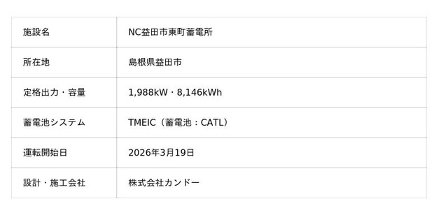 本施設は、再生可能エネルギーの出力変動を吸収・平準化し、JEPX(卸売市場)、需給調整市場、容量市場に対応する地域分散型エネルギー拠点として位置づけられています。また、災害時には地域の電力供給を支える防災拠点としての機能も備えており、地域のレジリエンス(防災力)向上にも寄与します。
