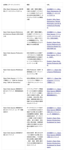 本年度のODSに関連する主な成果物は以下の表1に記載のとおりです。なお、それぞれの成果物のクレジット及びライセンスの取り扱いについては、リンク先でご確認ください。