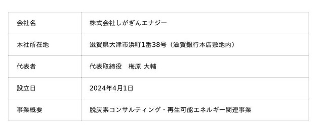 株式会社滋賀銀行(取締役頭取:久保田 真也、以下「滋賀銀行」)、株式会社しがぎんエナジー(代表取締役:梅原 大輔、以下「しがぎんエナジー」)、大阪ガス株式会社(代表取締役社長CEO:藤原 正隆、以下「大阪ガス」)およびDaigasエナジー株式会社(代表取締役社長:福谷 博善、以下「Daigasエナジー」)は、しがぎんエナジーが保有する太陽光発電所に由来する環境価値を活用した再生可能エネルギー(以下「再エネ」)電気を滋賀銀行の本店等に供給する“自産自消※1”モデル(以下「本取り組み」)の構築に合意しました。本日より、大阪ガスが滋賀銀行への再エネ電気供給を開始しており、今後しがぎんエナジーが保有する太陽光発電所に由来する環境価値を組み合わせて供給していきます。