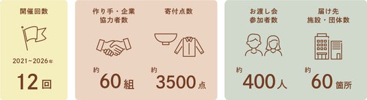 その後、株式会社マザーディクショナリーが運営面からサポート。活動に共感し、手を伸ばしてくださる作り手やブランドが少しずつ増え、思いのこもった器やお洋服を、さまざまな事情を抱えるこどもたちや若者へ手渡す活動へと広がっていきました。2020年からは、児童養護施設など社会的養護のもとで育ち、巣立ちの時期を迎えるこどもや若者へ向けた「うつわとお洋服のお渡し会」 を開催しています。これまでに約60組の作り手・企業から約3500点の器やお洋服を寄贈していただき、約400人の巣立ち前後のこどもや若者、約60箇所の施設や団体にお届けしてきました。