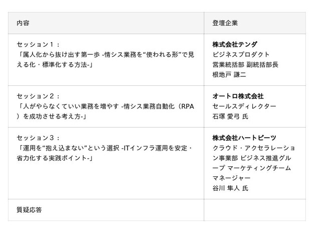 また、テンダからは、業務の標準化やマニュアル整備を効率化する「Dojo」を活用した具体的な運用改善の進め方についてもご紹介します。
