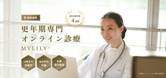 「MYLILY(マイリリー)」は更年期専門診療プラットフォームです。患者さまはオンラインで健康保険証をご提示・ご提出いただくだけで、保険適用にて医師の診療、処方、お薬の受け取りまでをLINEで完結することが可能になります。 更年期は5~10年続くと言われており、治療は長期間にわたることが少なくありません。「MYLILY」は、時間や場所を選ばないオンライン診療に加え、保険適用による費用負担の軽減により、患者さまの継続的な治療を力強くサポートします。
