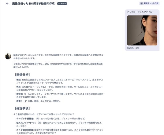 AIエージェントPRO[動画生成プロンプトエンジニア] がプロンプトを提案