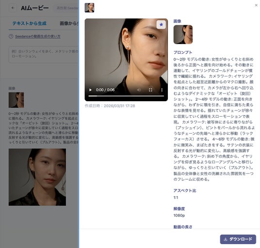 AIムービー生成結果の詳細画面