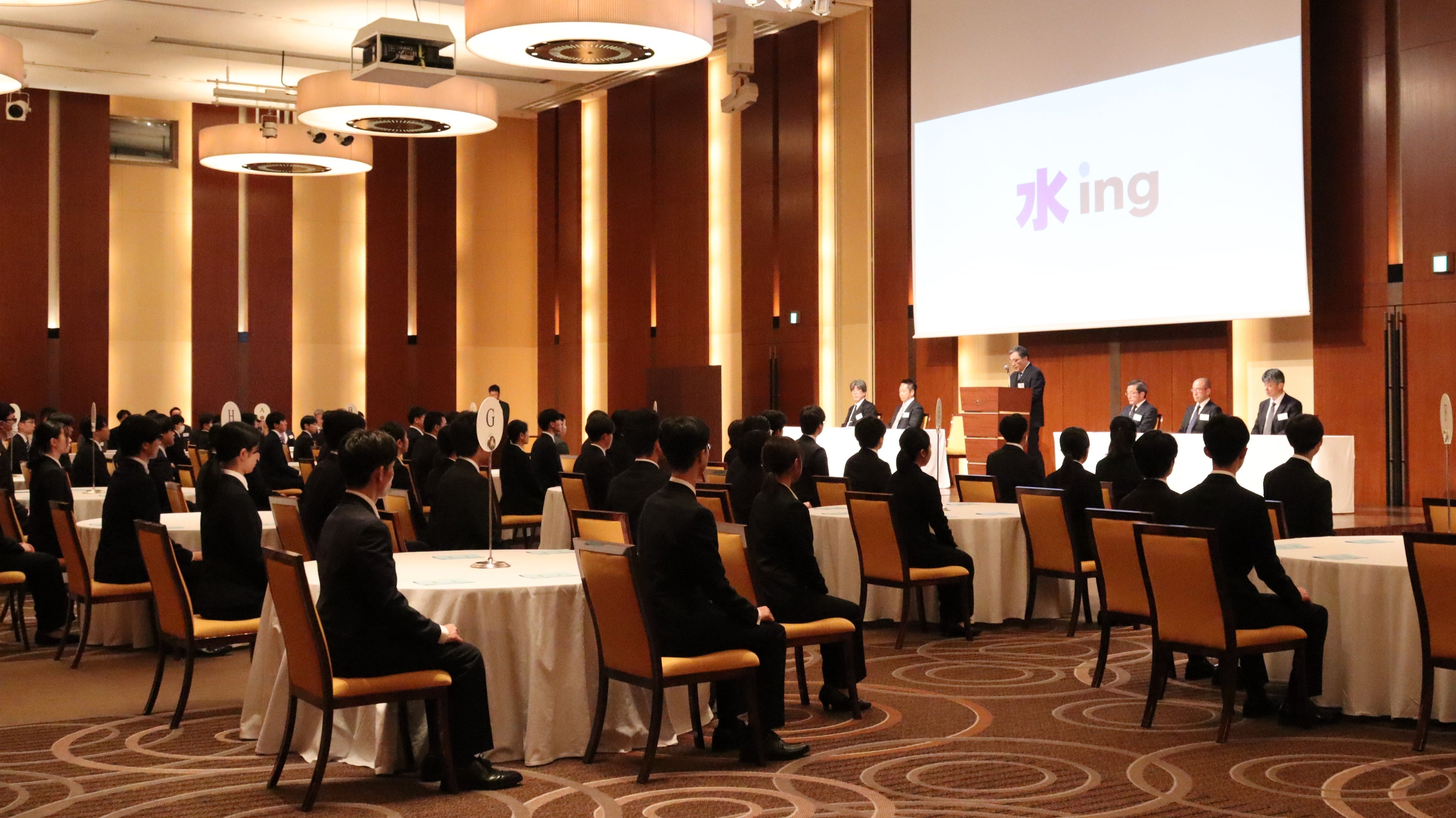 式典では、代表取締役社長の安田が祝辞を述べ、社員共通の価値観である「水ingバリュー」や、その企業姿勢を体現するブランドメッセージ「水の先をつくれ。」に触れながら、新入社員とともに未来を切り拓いていこうと呼びかけました。