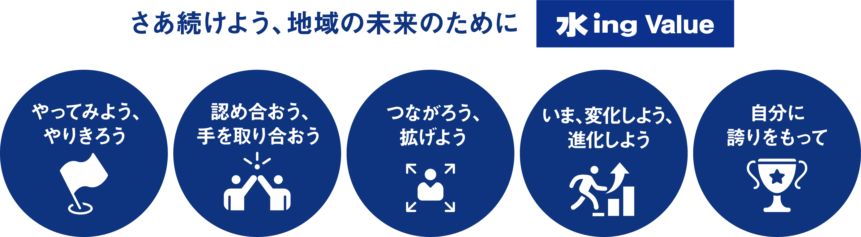 本項目は、当社が長期的に目指す社会的価値と事業の方向性を明確に定めた重要課題であり、今後の当社グループの経営と事業運営を導く「羅針盤」として位置づけるものです。2026年度に新たな仲間を迎え、全社員がこのマテリアリティに向けてベクトルを合わせて取り組んでいきます。共通の価値観である「水 ing バリュー」を一人ひとりが体現しながら、経営計画の着実な達成、さらにはその先にある「水ing流街づくり」の実現に向けて、組織一丸となって前進して参ります。