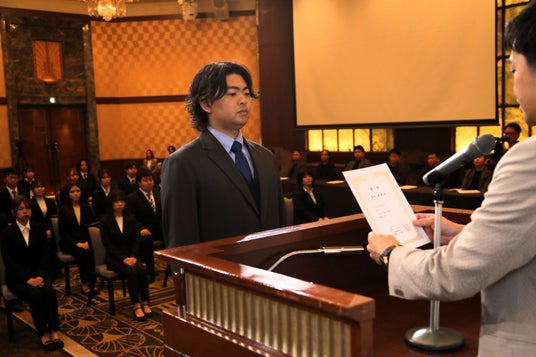 さらに、当社のタグライン『人生、やりたい事だらけ。さぁ、何から始める?』には、仕事を通じて可能性を広げてほしいという想いを込めています。NEXUSグループの一員として、さまざまなことに挑戦し、自己の価値を高めていくことを期待しています。私たちと一緒に、この会社をより強く、楽しんで仕事ができる会社として盛り上げていきましょう。」と祝辞を述べ、新入社員代表へ辞令が手渡されました。