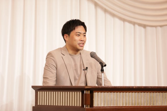 社会人としての第一歩を踏み出す新入社員を前に、星野万里 社長より「本日はご入社おめでとうございます。当社は、今年1月1日より企業ロゴデザインをはじめとするリブランディングを実施し、昨年には組織改革の一環として社名を NEXUS株式会社 から D’station株式会社 へ変更しました。現在は、NEXUSホールディングス株式会社のもと、新たな体制で事業を展開しています。そのような節目の中で、皆さんを新入社員として迎えることができ、当社でどのように活躍していくのかを非常に楽しみにしています。業務においては、研修制度をはじめ、先輩社員や上司がしっかりとサポートしていきますので、安心して仕事に取り組んでください。また、若さは無限の可能性を秘めた力です。当社は、意欲ある皆さんが力を発揮できる機会と環境を整えていますので、ぜひ自らを磨き、チャンスを活かして成長へとつなげてほしいと思います。
