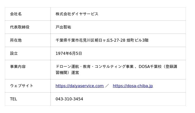 株式会社ダイヤサービス(本社:千葉県千葉市、代表取締役:戸出智祐)は、ドローンの安全運航と安全管理体制を支える現場特化型の応急手当プログラム「DEC(Drone Operations Emergency Care)」について、他のドローンスクールが自校でDECを開催するための「DECインストラクター資格制度」を創設しました。資格を取得したスクール講師は、DECの名称・ロゴを使って受講者に有償でDECを提供できます。