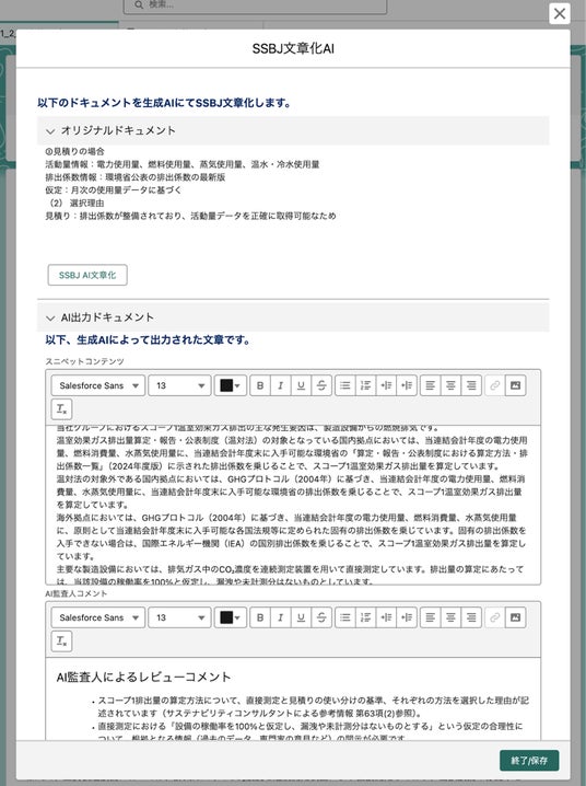 - SSBJ対応の加速:最新の開示要件に対応した文書生成により、規制への迅速な適応を支援。