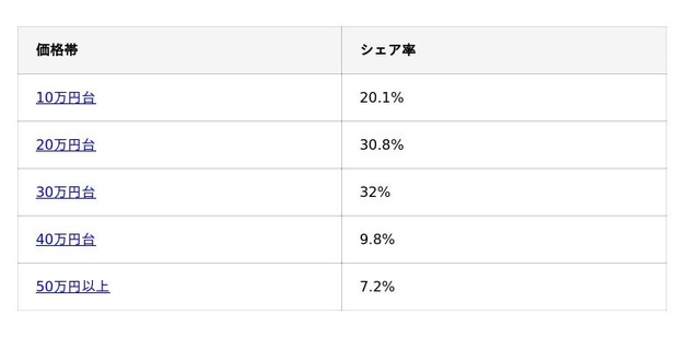 一方で「10万円台」も引き続き大きな関心を集めており、予算を重視した比較検討ニーズは依然として根強いままです。