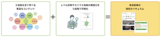AIが自動で毎日の学習カリキュラムを作成する機能です。アプリ内のレベルテストで単語、リスニング、文法、リーディング、スピーキングの各技能を5段階にレベル分けします。このレベルテストもAIで自動生成されます。生徒が自学自走できるようになる、AI学習カリキュラムです。