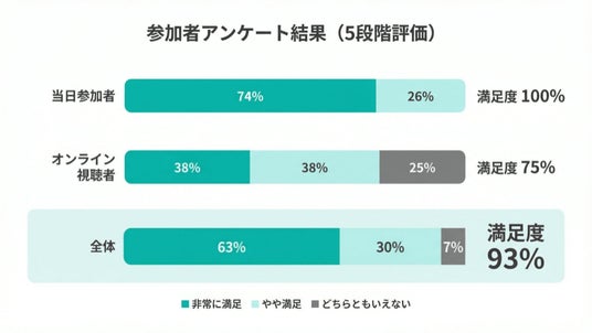 セミナー後のアンケート(5段階評価)では、「不満」の回答がゼロとなり、全体の93%が「満足」と回答しました。
