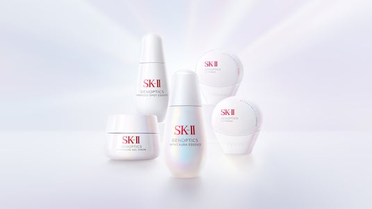 3つの新製品が加わりラインナップが広がったジェノプティクスシリーズで、引き続きまばゆいオーラ肌へ。全国のSK-IIカウンターおよびオンラインストアにて2026年4月5日よりお求めいただけます。