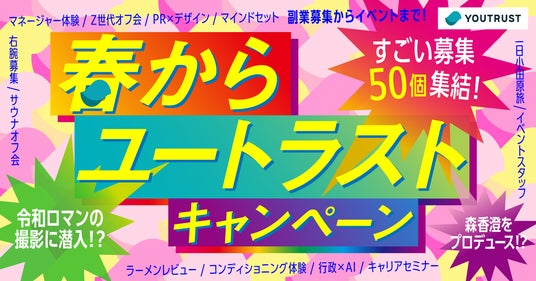 新年度のスタートに合わせ、YOUTRUSTに登録するだけで応募できる全50企画の特別な機会や体験を4月6日に一斉公開いたします。