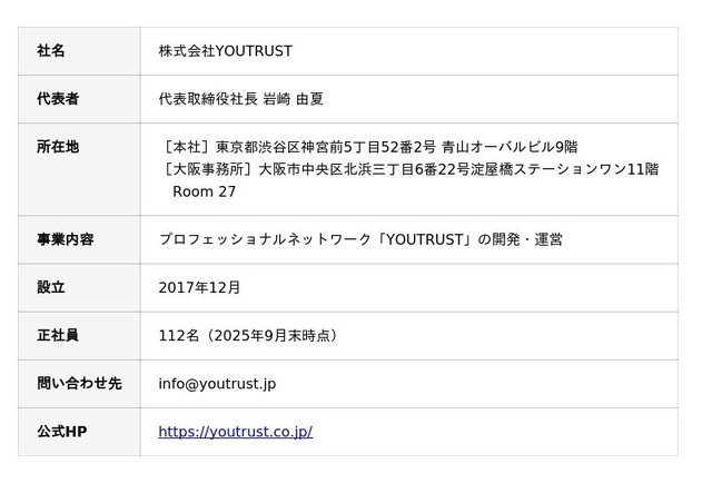 ▶ 広報支援「YOUTRUST ADS」:https://youtrust.jp/ads