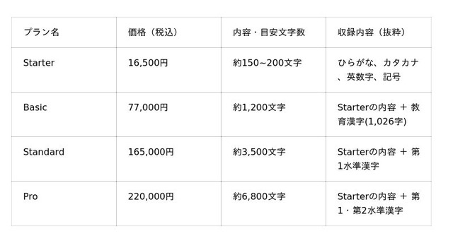 お子様の文字を記念に残したいご家庭から、独自の書体をデジタル化したい書道家の方まで、4つのプランをご用意しました。