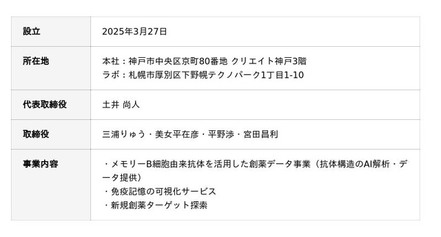 神戸市を共通の事業拠点とする両社が連携することで、メモリーB細胞由来抗体作製技術を基盤とした「獲得免疫解析事業」「動物薬への応用」の事業化を加速し、日本発の革新的なヘルスケア・創薬ソリューションの実現を目指してまいります。