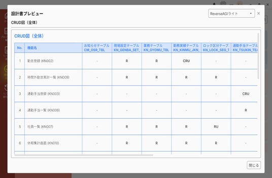 CRUD図の生成も可能。仕様の把握にかかる工数を劇的に削減。