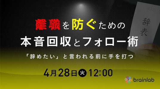 人材紹介・派遣業界向けシステム開発を行う株式会社ブレイン・ラボ(本社:東京都港区)は、2026年4月28日(火)、人材派遣会社および自社採用を行う企業を対象とした無料オンラインセミナー「『辞めたい』と言われる前に手を打つ、人材定着率向上の仕組み化セミナー」を開催いたします。採用コストが高騰し「獲得」が困難を極める今、現場の勘や経験に頼らない「離職予兆の可視化」と「フォローの標準化」による、顧客生涯価値の最大化についての具体策を解説します。