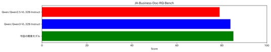 また、国内でも広く活用されている「Qwen3-VL-32B-Instruct」と同等の結果となり、世界的に高い性能を有していることが分かりました。