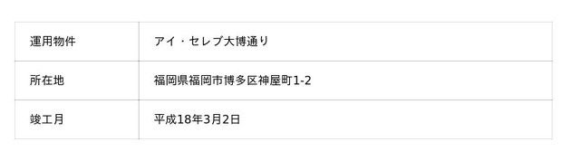 「アイ・セレブ大博通り」は、2006年3月竣工、地上14階建て・総戸数50戸の分譲リースマンションです。専有面積20平米台の1Kタイプを中心とした間取り設計により、九州最大のビジネス街である博多周辺で働く、単身ビジネスパーソンのニーズに特化しています。