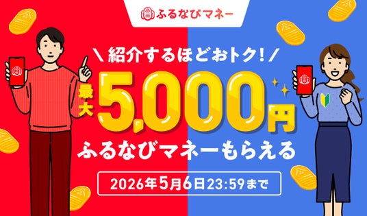 今回はふるなびマネー5%増量キャンペーンに加え、ふるなび電力では「最大13,000コインがもらえる!ふるなび電力新規契約キャンペーン」、ふるなびトラベル予約では「最大30%OFF!ふるなびトラベル予約 1周年記念キャンペーン」、たまるモールでは「ふるなびコインをお持ちの方限定!ふるなびコイン最大100%還元キャンペーン」を実施。さらに、「紹介するたび500円分!最大5,000円分のふるなびマネーがもらえる!新緑のふるなびマネー紹介キャンペーン」も実施いたします。